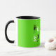 Hello Spring Niedlicher Cartoon Text Schwarz und Weiß auf Hellgrün Hintergrund Kaffeemaschine Tasse
