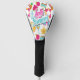 Hallo Summer Golf hat ein sehr attraktives Design. Mit warmen Farben. Alles im Hintergrund ist gezeichnet Obst. Sieht auf einem Golfer-Cover stilvoll und schön aus.