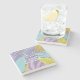 Lavendelhintergrund mit tropischem Blattwerk in Pastellfarben blau, rosa und Limon mit dem benutzerdefinierten Drehbuch "Hallo Summer"