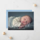 Hallo Welt Drehbuch Baby Blue Geburtsankündigung mit eleganten Skriptnachrichten. Diese Bonusausweise sind ein perfekter Weg, um allen lassen, dass sie Ihre wunderbaren Neuigkeiten kennen. Passen Sie die Vorderseite mit Ihrem Baby Foto und Namen an. Die Rückseite enthält eine schöne Skriptbotschaft zusammen mit Ihrer persönlichen Danksagung und Geburtsstatistiken. Entwickelt von Thisisnotme©