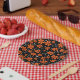 Hellorange Blume auf schwarzem Hintergrund mit w Pappteller