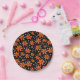 Hellorange Blume auf schwarzem Hintergrund mit weißen Polka-Punkten