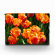 Niedliche, helle Orangentulpen im Park an einem sonnigen Tag im Garten. Das Foto wurde im Juni 2022 aufgenommen. Das Poster ist für die Innenarchitektur geeignet.