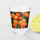 Niedliche, helle Orangentulpen im Park an einem sonnigen Tag im Garten. Das Foto wurde im Juni 2022 aufgenommen. Das Poster ist für die Innenarchitektur geeignet.