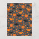 Helloween | Kürbis, Fledermaus, Blätter im Herbst. Postkarte