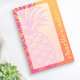 Post-it-klebrige Noten mit einem heißen rosa Ananas und Ihr individuelle Name oder Text senkrecht rechts auf einem gelben bis orangefarbenen Hintergrund ausgerichtet.