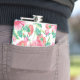 Elegante, helle, gürtelrosa Blume und grüne Blätter sind nahtlos. Weißer Hintergrund veränderbar.