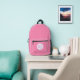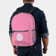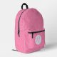 Rucksack mit femininen hellrosa gewellten Quadraten und einer personalisierten Initiale in einem weißen Kreis aus gewellten Quadraten. Perfektes Geschenk für die Dame in Ihrem Leben für die Schule oder zum Wandern. Könnte ein großartiges Muttertagsgeschenk für die richtige Mutter sein.