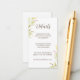 Die Kapselkarte für Hochzeiten zeigt ein einfaches Aquarelldesign mit hellrosa Blume und grünen Blätter. Es bietet Informationen zu Empfang- und Hochzeitswebseiten und kann an die Details Ihrer Wahl angepasst werden.