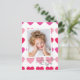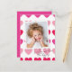 Hellrosa Herzchen Foto Valentine's Day Card mit modernem Herzmuster und Foto Overlay mit handgeschriebener Typografie vorne. Der Rücken ist eine Postkarte und hat eine längere persönliche Nachricht von Absender/Familie. Klicken Sie auf die Schaltfläche Bearbeiten, um dieses Design mit Ihren Fotos und Details anzupassen.