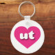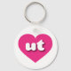 Dieser Schlüsselanhänger ist ein lebendiges, heiß-rosa Herz mit fett-weißen, abgerundeten Kleinbuchstaben, aber eine spielerische Abkürzung für Utah, den Bienenstock-Staat.