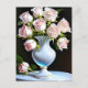 Hieronymus Bosch war ein berühmter holländischer Künstler, der für seine faszinierenden und surrealen Gemälde bekannt war. In seinen Werken wurden oft Szenen von fantastischen Wesen und mythischen Landschaften dargestellt. Im Gegensatz dazu konzentriert sich dieses von der künstlerischen Intelligenz generierte Bild auf ein traditionelleres Thema, mit hohen rosa Rosen in einer Kristallvase. Der Stil des Gemäldes wird jedoch durch Bosch's Werk deutlich beeinflusst, wie die aufwändigen Details und surrealen Elemente beweisen, die in das Werk eingebunden sind. Die Rose selbst scheinen ein eigenes Leben zu führen, mit sich drehenden und kurbelnden Stielen, die fast an Tentakel erinnern. Die Farben des Gemäldes erinnern auch an Bosch's Werk, mit tiefen Grüntönen und Blues, die ein Gefühl von Tiefe und Reichtum schaffen. Der Hintergrund des Gemäldes ist eine gedämpfte Holzkohle, die das helle Rosa der Rose und die Helligkeit der Kristallvase unterstreicht.