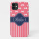 Hellrosa und weiße Schleifenbogenmuster oben, rosa und weiße Streifen Muster unten. Zusätzlich zum hellrosa und weißem Bogen-Muster ist ein marineblau-weißes Label mit einem monogramm Anfangsbuchstaben und Namensvorlage für Sie, die Sie anpassen können.