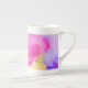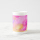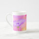 Eine hübsche und weibliche Knochen-China Tasse, die ein florales Aquarelldesign in hellrosa zeigt.