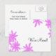 Geben Sie Ihre neue Adresse und Telefonnummer mit der niedlichen, leuchtend rosa Tageszeitung Änderung der Adresse Postkarte bekannt. Passen Sie es mit all Ihren neuen Kontaktinformationen und Namen auf der Rückseite an. Diese hübsche neue Adresse postcard mit Blumenmuster bietet fuscia daisies mit weißem Hintergrund.