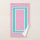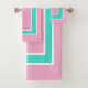 Hellrosa, türkisfarbenes Blockmuster Badhandtuch Set