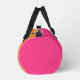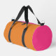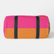 Orangefarbene Buchstaben für Ihr Monogramm erscheinen auf der hellrosa Vorderseite des Duffelsacks. Dieser Farbblockbeutel hat zwei hellrosa Seiten und zwei orangefarbene Seiten. Alle Texte können bearbeitet oder gelöscht werden.