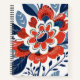 Ein schönes und kühn gestaltetes Notizbuch voller Rot-, Blues- und Weißstiele und botanischer Blume. Lächeln Sie sofort ins Gesicht!