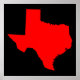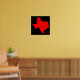 Die Form des Staat von Texas in hellrot auf schwarzem Hintergrund.