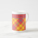Hellrote Gelbe und Karierte Knochen-China Tasse