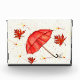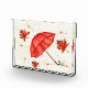 Hellroter Regenschirm und rote Blätter Aquarell Fotoblock