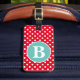 Hellrote und weiße Polka-Punkte mit einem hellen aquamarinen und weißen Monogramm, das Sie personalisieren können. Fügen Sie Ihre Kontaktinformationen auf der Rückseite für ein Gepäckanhänger, das bemerkt wird.