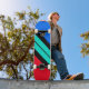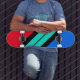 Dieses coole, sportliche Design zeichnet sich durch einen diagonal gespaltenen Rennstreifen mit anliegenden fett schwarzen Streifen aus. Die obere Hintergrundfarbe ist blau und der untere Hintergrund ist hell rot.