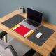 Hellrotes, weißes gelbes Racing auf schwarzen Stre Schreibtischunterlage