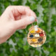 Dieses Design ist ein Hühnerhaus. Die Hennen sitzen auf einem Dach und unten sind Eier. Dieses Häuserdesign sieht großartig auf diesem Schlüsselanhänger aus