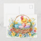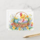 Hen stands beside an Easter nest filled with eggs Postkarte