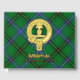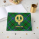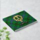Clan Henderson Wappen Abzeichen umgeben von einem Gurt und Schnalle über Tartan Hintergrund. Benutzerdefinierter Vorder-, Rücken- und Rückentext.