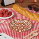 Dieses weiße Mandala sitzt auf einem henna-orangen Hintergrund. Die Farbe ist dunkel und natürlich. Teil der Erghenn Mandala Kollektion.