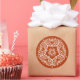 Dieses weiße Mandala sitzt auf einem henna-orangen Hintergrund. Die Farbe ist dunkel und natürlich. Teil der Sammlung Jarn Mandala.