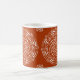Dieses weiße Mandala liegt auf einem henna-orangen Hintergrund. Die Farbe ist dunkel und natürlich. Teil der Sammlung Dagrewi Mandala.