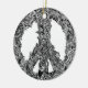 Zwei Entwürfe in einem! Vorderes Bild ist von der ursprünglichen Tinte, die Hennastrauch inspirierte Muster in ein Friedenszeichen kombinierend zeichnet. Rückseite der Verzierung wird von den gleichen Mustern aber von den leeren Raumformen das Friedenszeichen geschaffen.