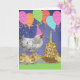 Glückliche Mutter klopfen Geburtstag, Nachricht in der Karte geschrieben. Decken Sie das Bild einer Geburtstagsfeier mit ihren Küken, die sich bereit machen, auf einem Kuchen mit verschiedenen Samen in einem Nest mit einer Geburtstagskandle auf der Spitze zu essen. Party-Ballons und Goldsterne füllen den Hintergrund. Art, Bild und Vers Copyright © Shoaff Ballanger Studios, 2022.