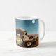 Henri Rousseau Die schlafende Sinti und Roma-Tasse. Ölmalerei auf Leinwand aus dem Jahr 1897. Das Sleeping Sinti und Roma ist eines der bekanntesten Gemälde Henri Rousseaus und zeigt einen Löwen, der einen Mann mit einem mehrfarbigen Mantel beobachtet, der neben einer Gitarre und einem Wasserpfeifer schläft. Die Nacht ist klar, und die Berge lauern in der Ferne. Ein weißer Mond leuchtet über dem Himmel und der Nachthimmel ist tiefblau. Ein wunderschönes Geschenk für Fans von Henri Rousseau, Postimpressionismus, Löwenmalereien und französische Kunst.