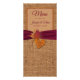 Dieses erschwingliche rustikale Hochzeitsmenü im Herbst koordiniert die unten abgebildete Hochzeitskollektion und kann an jedem Ort genutzt werden, um Ihr Thema "Herbst in Liebe" während Ihrer Hochzeit zu tragen. Der simulierte Hintergrund der Burlap-Textur, der Textsegment des Kraft-Papiers, in Wein und Orange geschnitten mit einem bordeauxroten Weinbandbild, das durch die Mitte der Speisekarte läuft, hat eine Reihe von Herbstblättern und ein kleines, simuliertes Holzherz in Gold mit bordeauxfarbenen Buchstaben, auf dem steht "Fall in Liebe". Es gibt einen abnehmbaren Pfeilteiler in verbrannter Orange mit den Namen der Braut und des Bräutigams und dem Hochzeitstag in Bordeaux und Orangendruck. Die Menüdetails werden auf der Rückseite in verbranntem Orange gedruckt. Wenn Sie weitere passende Artikel benötigen, schicken Sie Ihre Anfrage bitte an niteowlstudio@gmail.com oder nutzen Sie die Zazzle-Chat-Funktion, um die Touch zu erhalten.