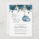 Rustikale Babyduscheinkarte mit blauen Kürbissen und Blume. Im Text steht "Fall in Liebe mit Baby XX".