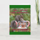 Weihnachtskarte, die kennzeichnet niedliches, lustiges Bild des Eichhörnchens auf dem Dach einer Keramik Weihnachtshaus-Teekanne mit humorvollem Kommentar vom Eichhörnchen "OKAY… Herauf auf die Dachspitze… WAS JETZT?? "