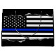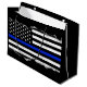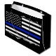 Eine einzigartige dünne blaue Linie Flaggegeschenkrückseite mit dem Bild der Flagge, die aus der Tasche selbst heraus zerrissen aussieht. Diese bestimmte Tasche ist im Farbschwarzen.