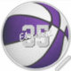 Dieser Basketballaufkleber zeigt das realistische Bild eines Basketballs, der abwechselnd lila und weiße Farbtafeln hat, auf denen man den Namen und die Trikotnummer des Athleten personalisieren kann - durch katz_d_zynes