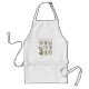 Weiße Schürze mit Kräuterdesign. Diese Schürze hat Taschen lang die Vorderseite und Kräuterstämme und Gläser auf der Brust. Fügen Sie oben eine Textzeile oder einen Namen in einem lila Skript hinzu.