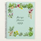 Herb border, custom planner. Blueish green color with text in the center for a title, with year. A split border of herbs decorates the top and bottom on the front. More herbs, with a little pot, decorate the back. Perfect for the herb gardener, naturalist, holistic healer, or botanist. Size 8.5 x 11 inches, or choose the smaller size. The design will change, but still works.