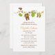 Die Babyduscheneinladungen, die eine schöne Illustration des Babys kennzeichnen, kleidet auf einer Rebe und einem niedlichen kleinen Vogel. Vervollkommnen Sie für Herbst-Babypartys. Zusammenpassende Umschläge, Aufkleber, Aufkleber und danken Ihnen kardiert verfügbares.