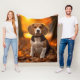 Genießen Sie den rustikalen Charme des Herbstes mit unserer atemberaubenden Decke, die einen bezaubernden Beagle in einem Erntefeld als die Sonne Sets im Hintergrund zeigt.