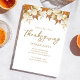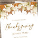 Dieses Design bietet Herbstlaub-Erntedank, elegante botanische Blätter im Grünen, Familienabendgäste, mit einfachem, minimalistisch-raffiniertem Party, mit elegantem Kalligraphieskript-Schriftart, einer trendigen, stilvollen Typografie, einem rustikalen Landhausstil, Erntedank-Dinner-Dankbarkeit, familienfloralen Eukalyptus, eleganten Erntedank.