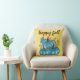 Fall blaue Kürbis Gold werfen Kissen! Moderne trendige Typografie zitiert "glücklicher Fall". Drei niedliche und farbenfrohe blaue Kürbis mit Herbstblättern. Fall Gold Hintergrund. Schön und gemütlich!