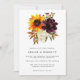 Eine hübsche Herbstkuppe mit gelber Sonnenblume, lila Peune und weißer Hydrangea runden diese moderne Hochzeitseinladung ab. Es ist Teil der Kollektion Sonnenblumen und Burgund.