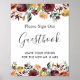 Herbstburgund florale Hochzeit Gästebuch Zeichenposter